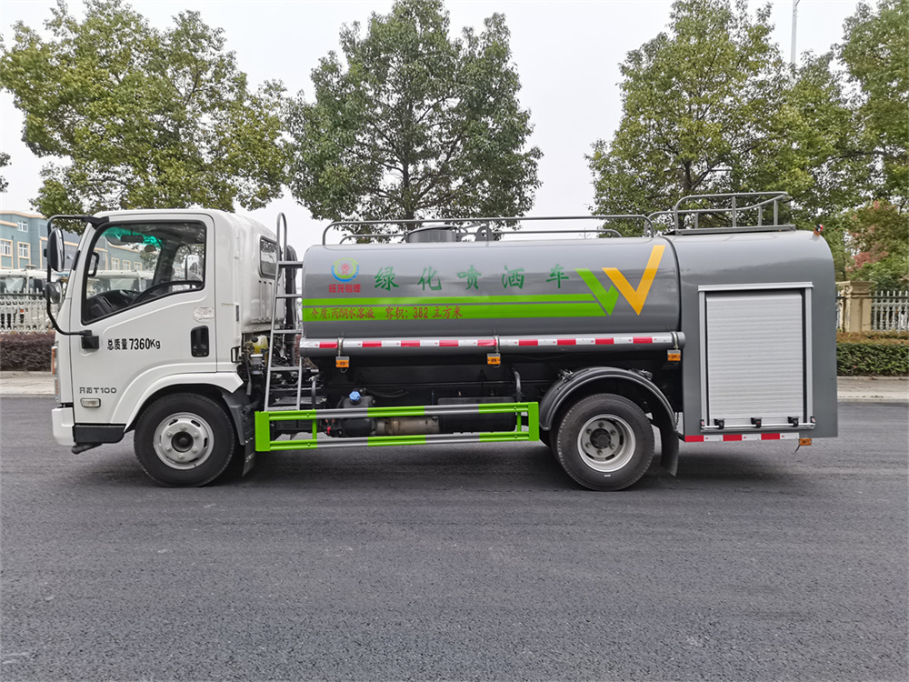 灑水車性能特點:前沖(噴)后灑,帶側噴,罐體后帶工作平臺,平臺上安裝綠化灑水炮,灑水炮可360旋轉,可連續調成直沖狀、大雨、小雨、毛毛雨,帶安全護欄,配備全國質量評比**名的杭州威龍大功率專用  灑水泵,泵可自吸自排,安裝過濾網,帶消防接口,可通過消防栓進水,帶自流閥,隨車選裝20米綠化卷盤,可噴灑農藥。