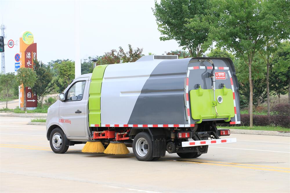 1.采用吸掃混合的方式收集垃圾,濕式除塵、電液,液壓傾翻卸料的作業(yè)方式對路面進行清掃作業(yè)。