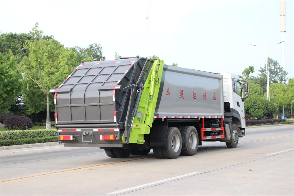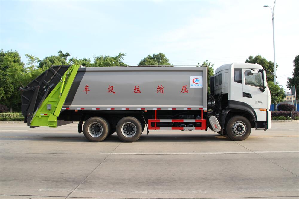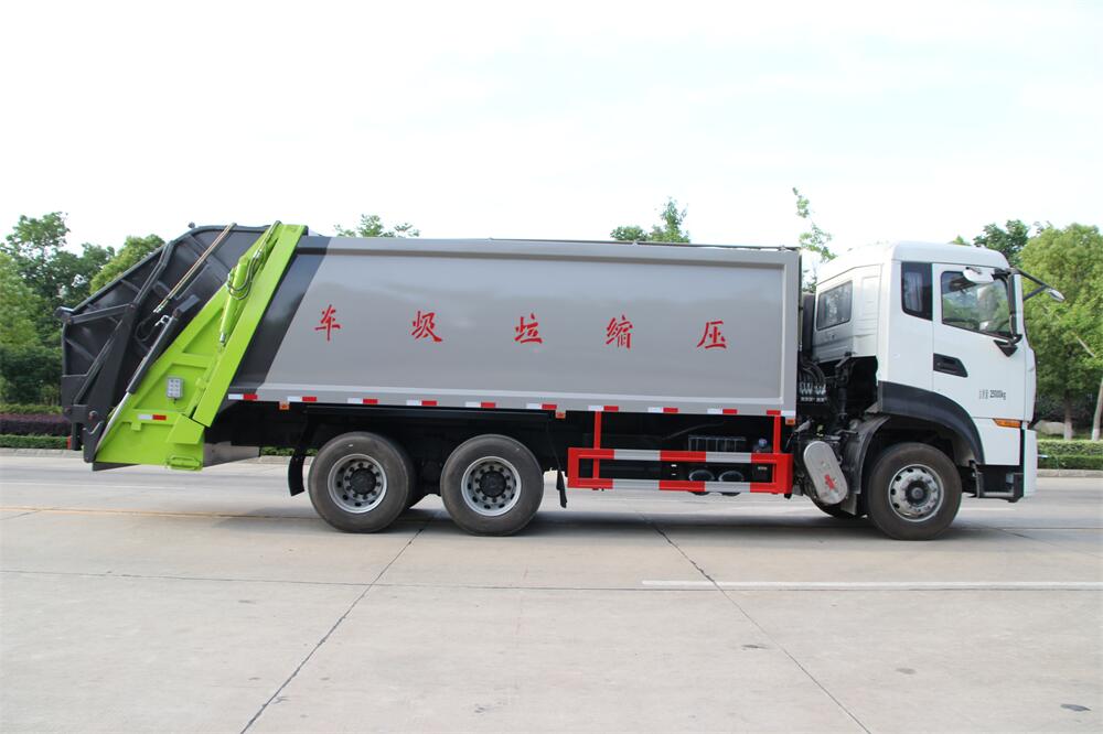上裝配置:垃圾箱容積:18,20方選擇,新款平面弧形廂體,廂體材料為武鋼優(yōu)質(zhì)碳鋼,PLC一鍵操作**,手電一體操作模式,兩側(cè)雙電控,帶駕駛室內(nèi)操作,底板支撐加強(qiáng),雙向壓縮,開(kāi)放式易清潔污水箱。壓縮式垃圾車采用機(jī)電液一體化技術(shù),借助機(jī)、電、液聯(lián)合自動(dòng)**系統(tǒng)、電腦**、手動(dòng)操作系統(tǒng),通過(guò)填裝器和推鏟等專用裝置,實(shí)現(xiàn)垃圾倒入、壓碎或壓扁、強(qiáng)力裝填,把垃圾擠入車廂并壓實(shí)和推卸,污水全部進(jìn)入污水廂,解決了垃圾運(yùn)輸過(guò)程中的二次污染的問(wèn)題。壓縮式垃圾車具有自動(dòng)反復(fù)壓縮以及蠕動(dòng)壓縮功能,壓縮比高、密封性好、裝載量大﹑操作方便、環(huán)保性好﹑整車?yán)霉β矢叩葍?yōu)點(diǎn)。作業(yè)自動(dòng)化,垃圾收集方式簡(jiǎn)便、高效。后翻轉(zhuǎn)機(jī)構(gòu)選裝:1、掛塑料桶式翻轉(zhuǎn)機(jī)構(gòu);2、掛鐵桶式翻轉(zhuǎn)機(jī)構(gòu);3、擺臂式翻轉(zhuǎn)機(jī)構(gòu); 4、簸箕斗式翻轉(zhuǎn)機(jī)構(gòu)。
