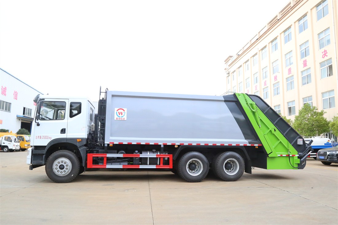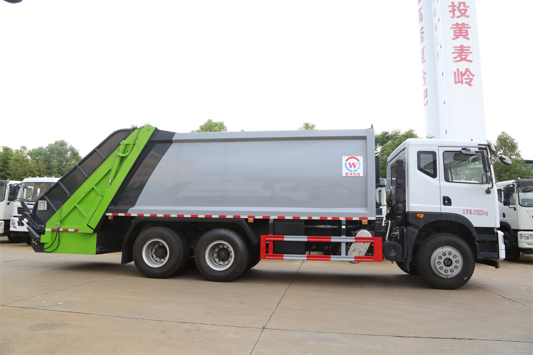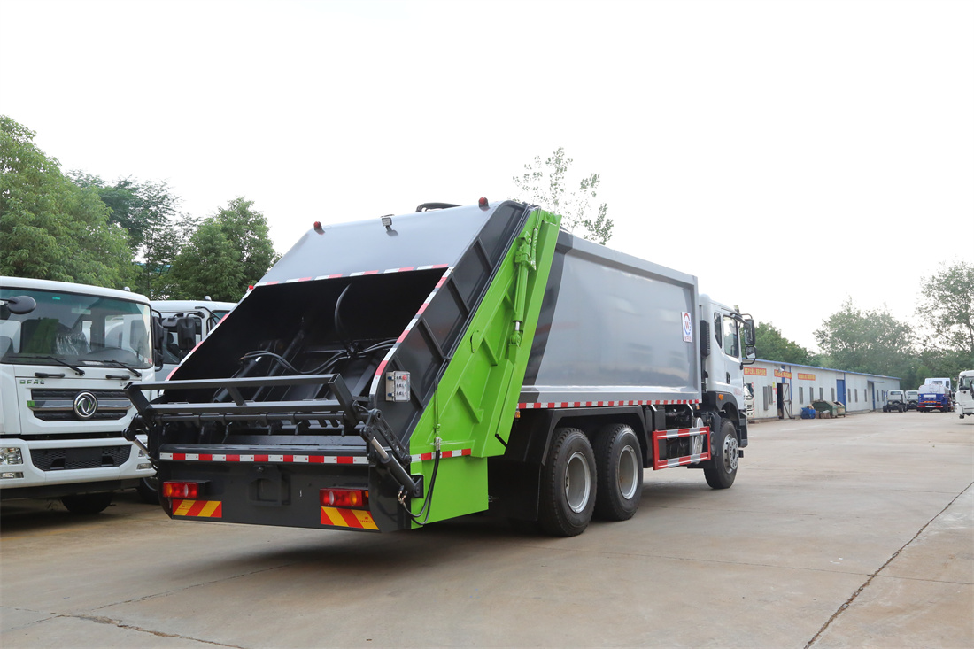 上裝配置:垃圾箱容積:18,20方選擇,新款平面弧形廂體,廂體材料為武鋼優(yōu)質(zhì)碳鋼,PLC一鍵操作**,手電一體操作模式,兩側(cè)雙電控,帶駕駛室內(nèi)操作,底板支撐加強(qiáng),雙向壓縮,開放式易清潔污水箱。壓縮式垃圾車采用機(jī)電液一體化技術(shù),借助機(jī)、電、液聯(lián)合自動(dòng)**系統(tǒng)、電腦**、手動(dòng)操作系統(tǒng),通過(guò)填裝器和推鏟等專用裝置,實(shí)現(xiàn)垃圾倒入、壓碎或壓扁、強(qiáng)力裝填,把垃圾擠入車廂并壓實(shí)和推卸,污水全部進(jìn)入污水廂,解決了垃圾運(yùn)輸過(guò)程中的二次污染的問題。壓縮式垃圾車具有自動(dòng)反復(fù)壓縮以及蠕動(dòng)壓縮功能,壓縮比高、密封性好、裝載量大﹑操作方便、環(huán)保性好﹑整車?yán)霉β矢叩葍?yōu)點(diǎn)。作業(yè)自動(dòng)化,垃圾收集方式簡(jiǎn)便、高效。后翻轉(zhuǎn)機(jī)構(gòu)選裝:1、掛塑料桶式翻轉(zhuǎn)機(jī)構(gòu);2、掛鐵桶式翻轉(zhuǎn)機(jī)構(gòu);3、擺臂式翻轉(zhuǎn)機(jī)構(gòu); 4、簸箕斗式翻轉(zhuǎn)機(jī)構(gòu)。