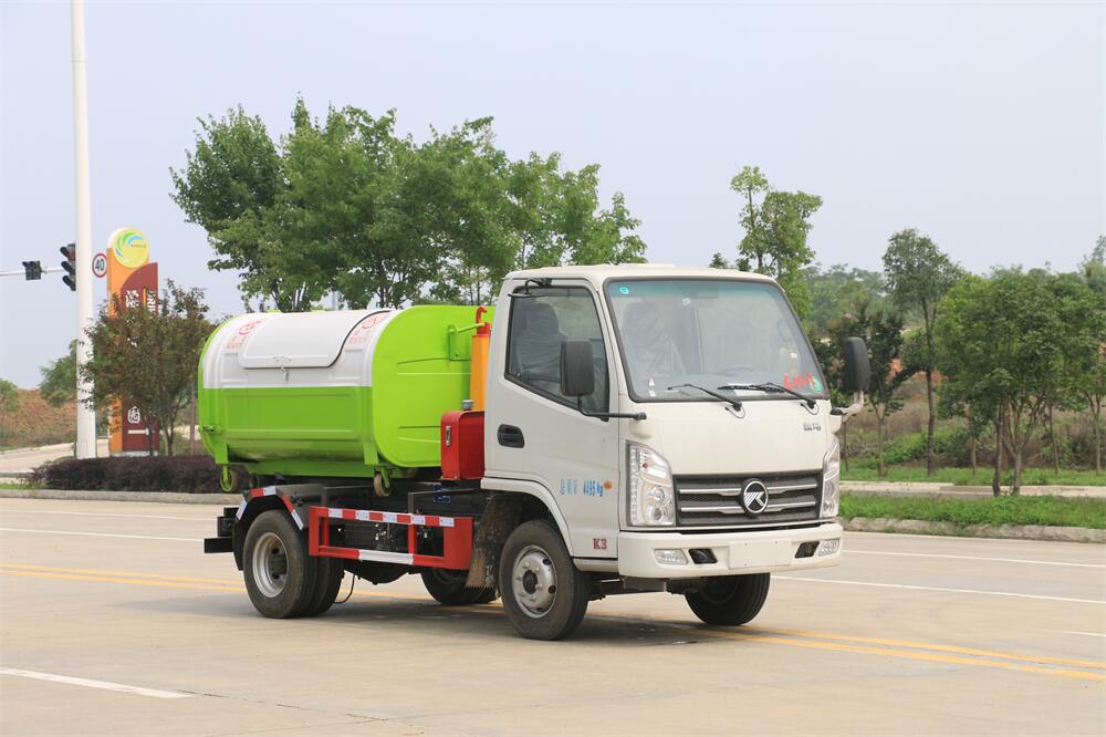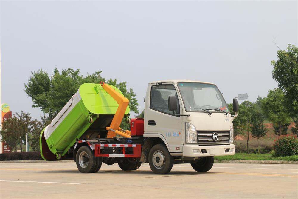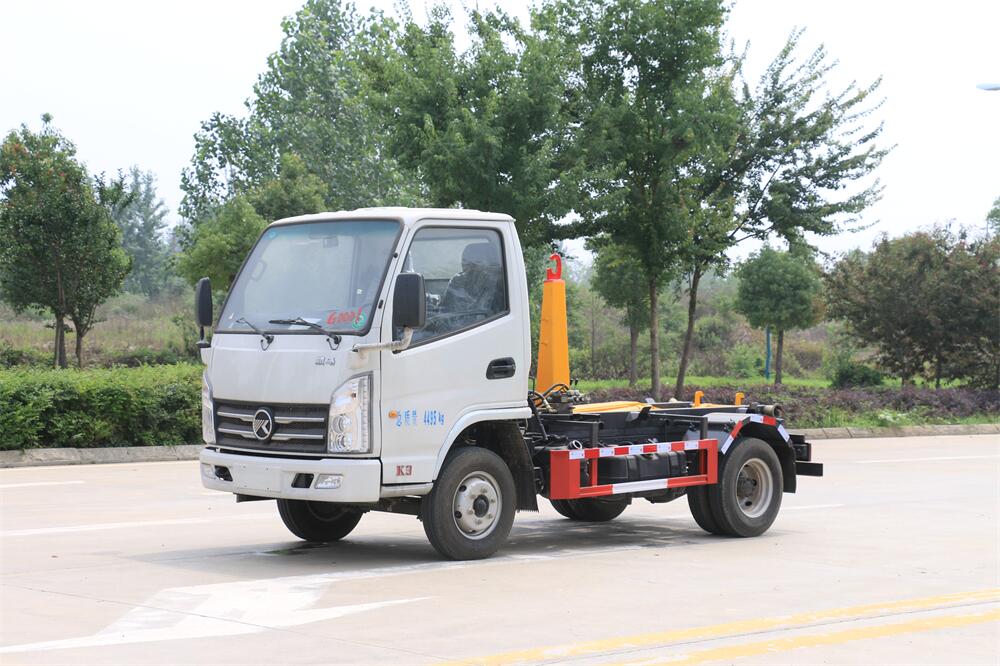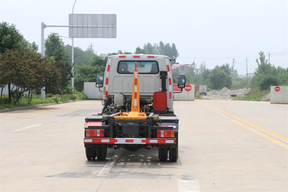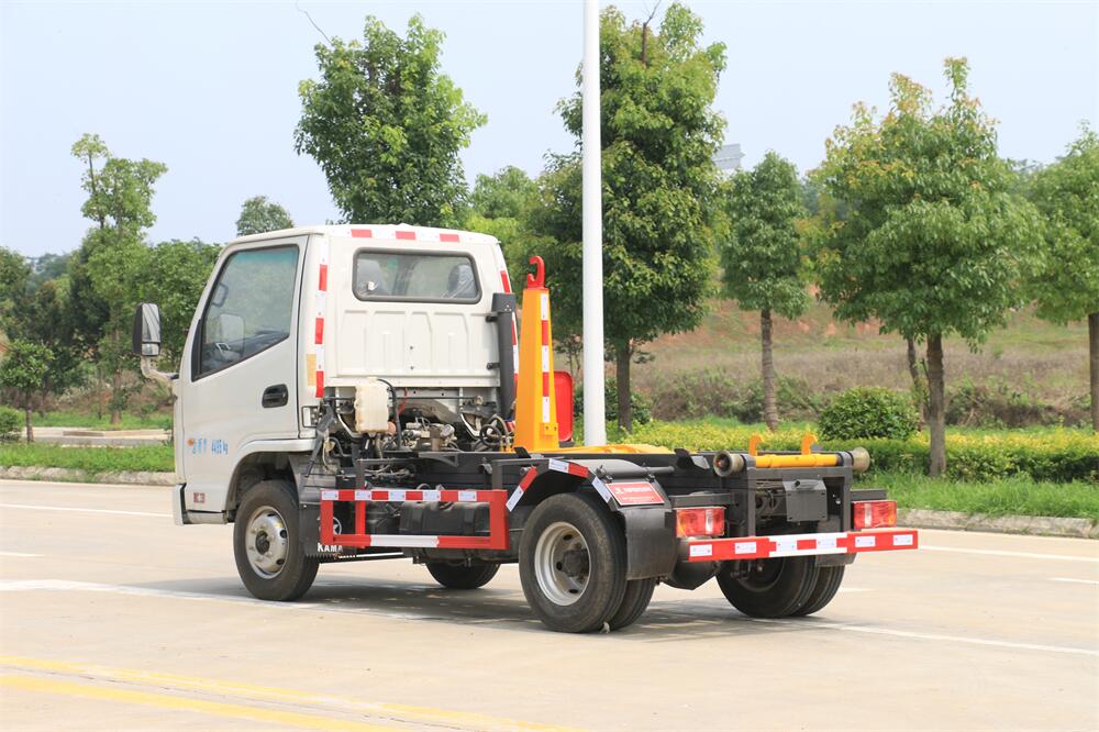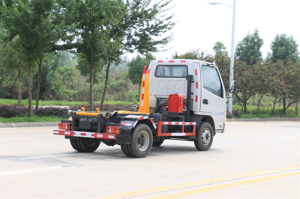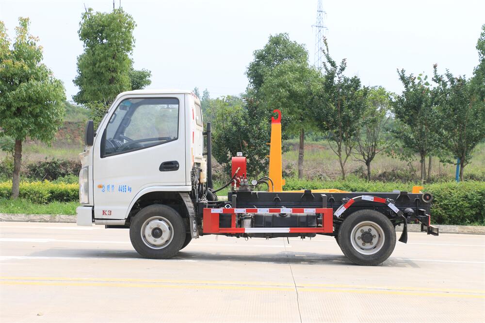 勾臂式垃圾車(車廂可卸式垃圾車)介紹: 車廂可卸式垃圾車又叫拉臂式垃圾車,是一種采用高新設(shè)計(jì)可伸縮的鉤臂,實(shí)現(xiàn)垃圾廂的二次吊裝,自吊上放下,可自行傾倒垃圾的環(huán)衛(wèi)設(shè)備。 拉臂式垃圾車結(jié)構(gòu)簡單,操作穩(wěn)定方便,裝卸效率高,機(jī)械化程度高,節(jié)省人力。鉤臂垃圾車一車可帶多個(gè)垃圾廂,在裝卸的運(yùn)輸過程中可有效地避免二次污染。 拉臂垃圾車采用高新設(shè)計(jì)可擺動(dòng)的鉤臂,垃圾箱由框架、開啟油缸、滑輪、后門和若干加強(qiáng)框架與鋼板焊接而成。調(diào)換貨廂快捷方便,貨廂上帶蓋(倒垃圾時(shí)可翻開),鉤臂垃圾車?yán)鴰w可選用碳鋼、不銹鋼材質(zhì)、內(nèi)部采取環(huán)氧樹脂防腐處理,改裝部分與原車底盤為可分離式,維修方便且保持了原車的機(jī)動(dòng)性及行駛性能。