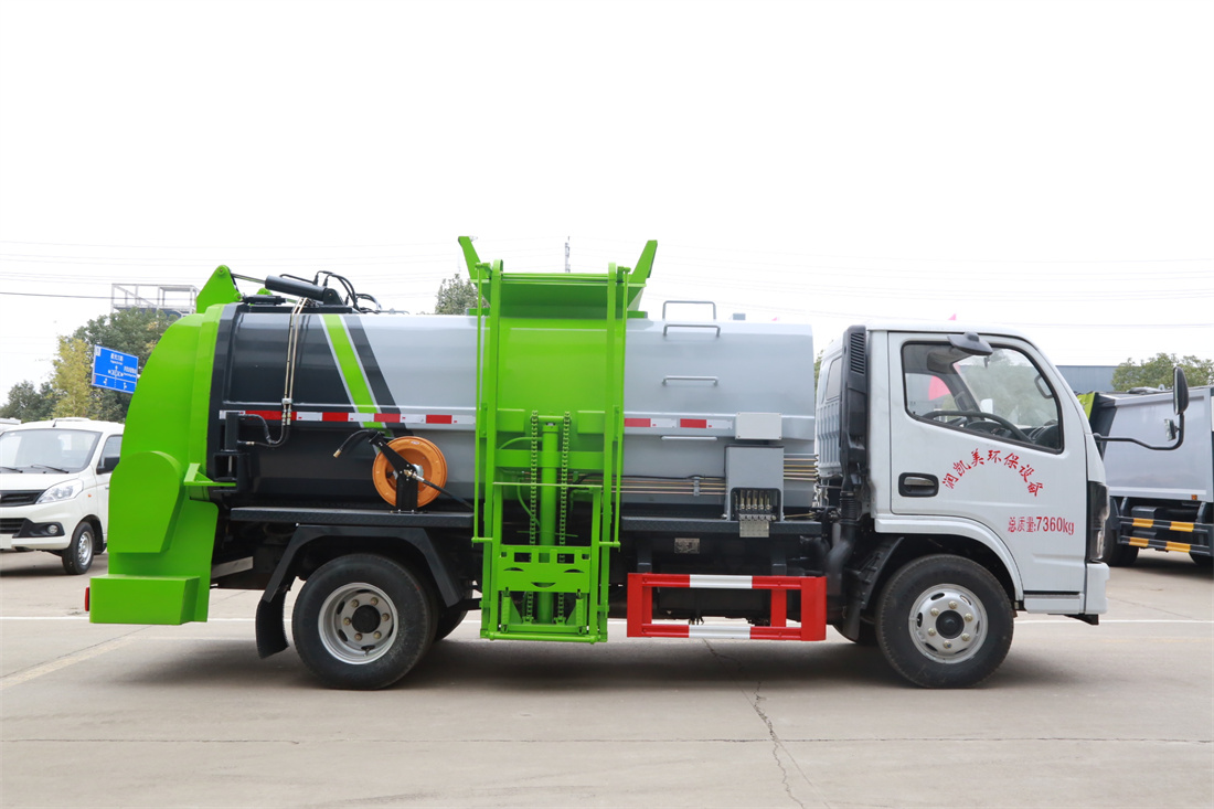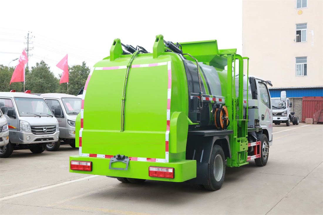 上裝配置:罐體容積6m3,配備120L/240L掛桶提升翻轉機構,液壓系統,后蓋液壓鎖緊開啟,罐體可以舉升自卸,尾部帶自流閥;用于運輸液態垃圾,其特點操作簡單,密封性好,無泄漏,無異味;可選裝固液分離功能,推板擠壓功能,常用于餐館的垃圾轉運處理。