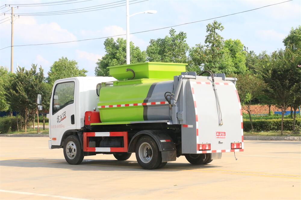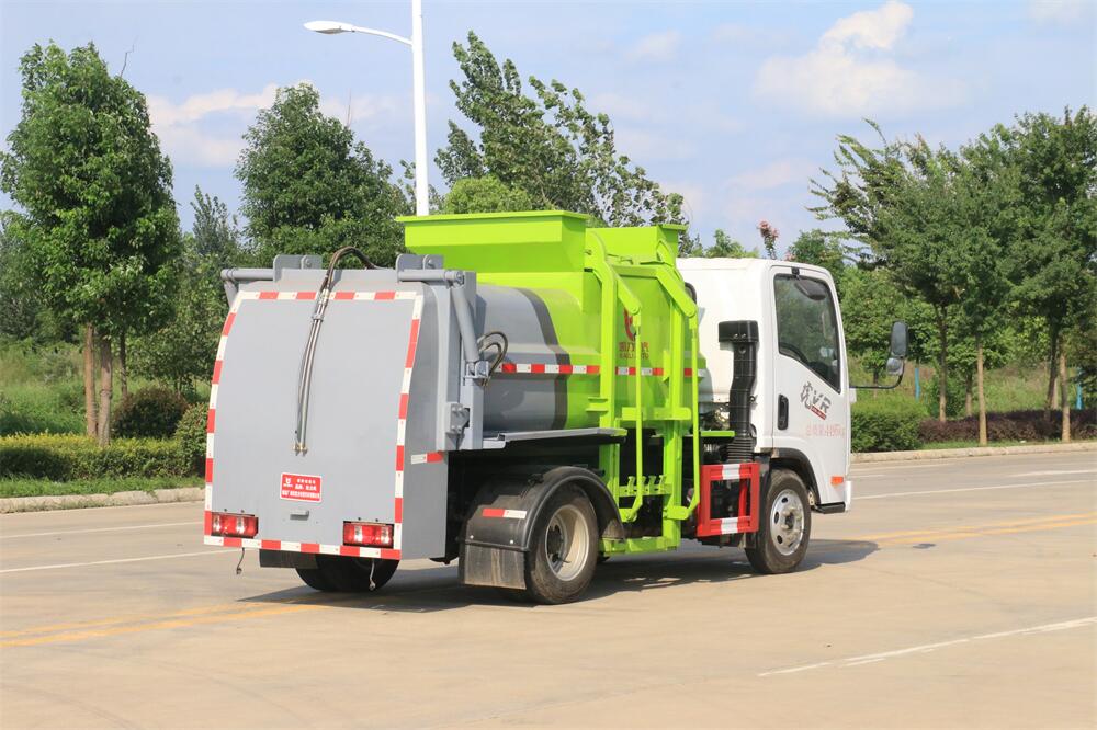 上裝配置:罐體容積6m3,配備120L/240L掛桶提升翻轉(zhuǎn)機(jī)構(gòu),液壓系統(tǒng),后蓋液壓鎖緊開啟,罐體可以舉升自卸,尾部帶自流閥;用于運(yùn)輸液態(tài)垃圾,其特點(diǎn)操作簡(jiǎn)單,密封性好,無泄漏,無異味;可選裝固液分離功能,推板擠壓功能,常用于餐館的垃圾轉(zhuǎn)運(yùn)處理。