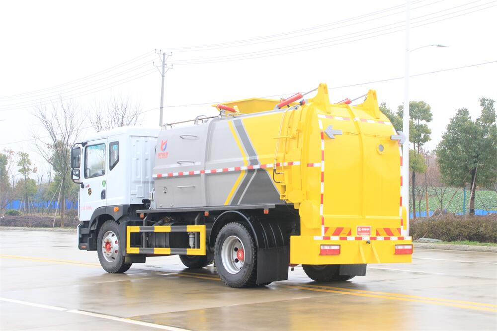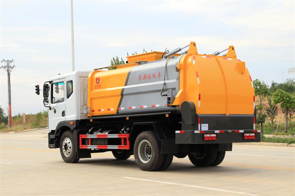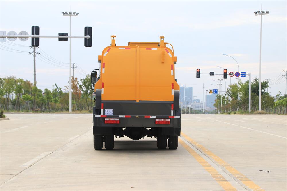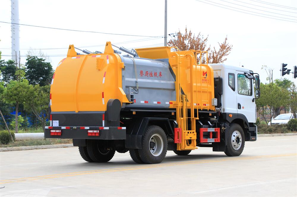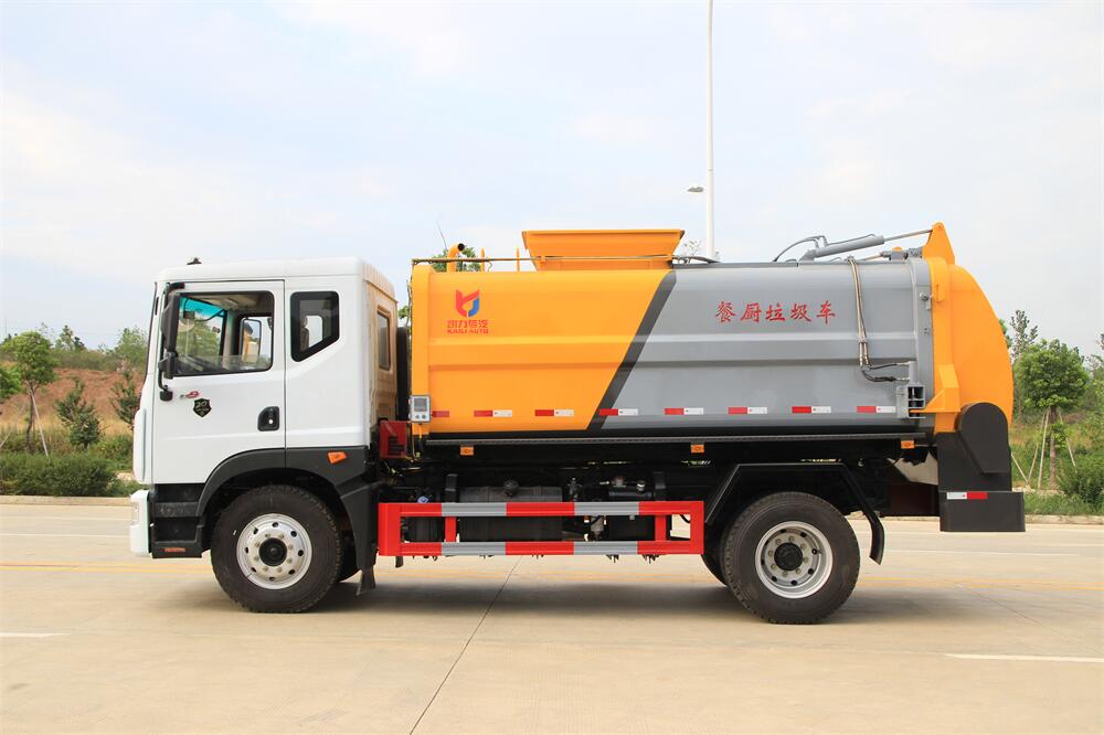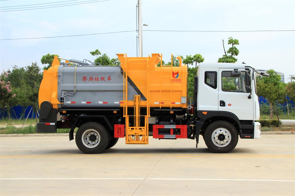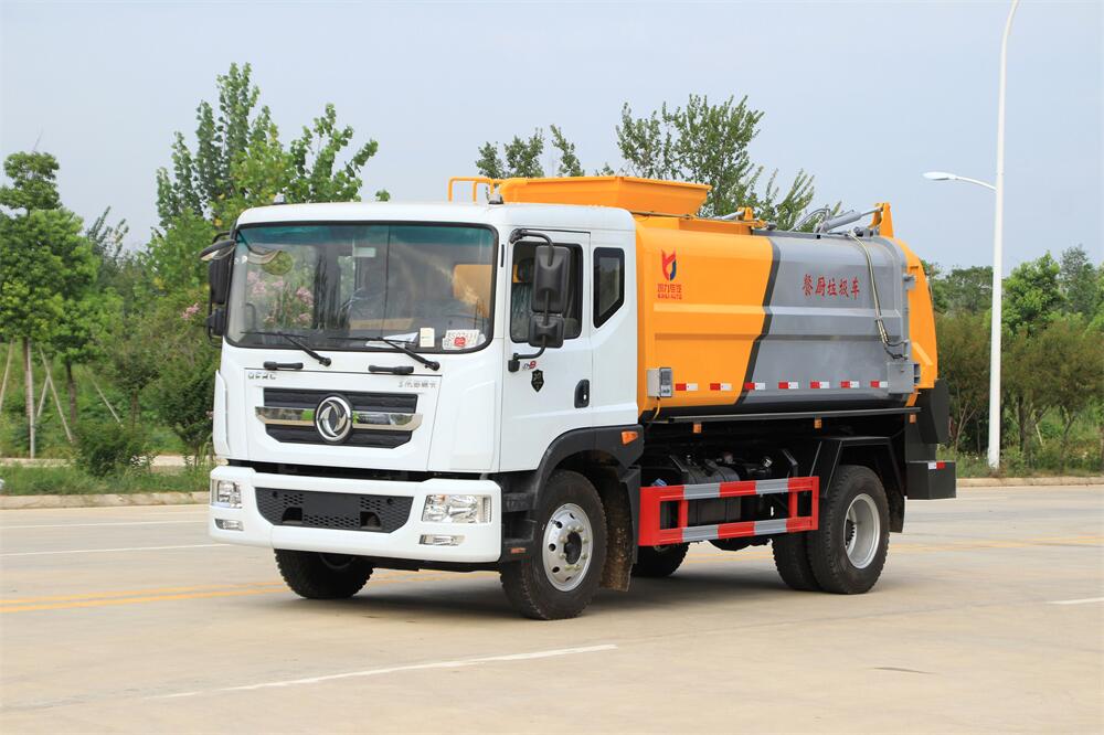 上裝配置:罐體容積10m3,配備120L/240L掛桶提升翻轉(zhuǎn)機(jī)構(gòu),液壓系統(tǒng),后蓋液壓鎖緊開(kāi)啟,罐體可以舉升自卸,尾部帶自流閥;用于運(yùn)輸液態(tài)垃圾,其特點(diǎn)操作簡(jiǎn)單,密封性好,無(wú)泄漏,無(wú)異味;可選裝固液分離功能,推板擠壓功能,常用于餐館的垃圾轉(zhuǎn)運(yùn)處理。