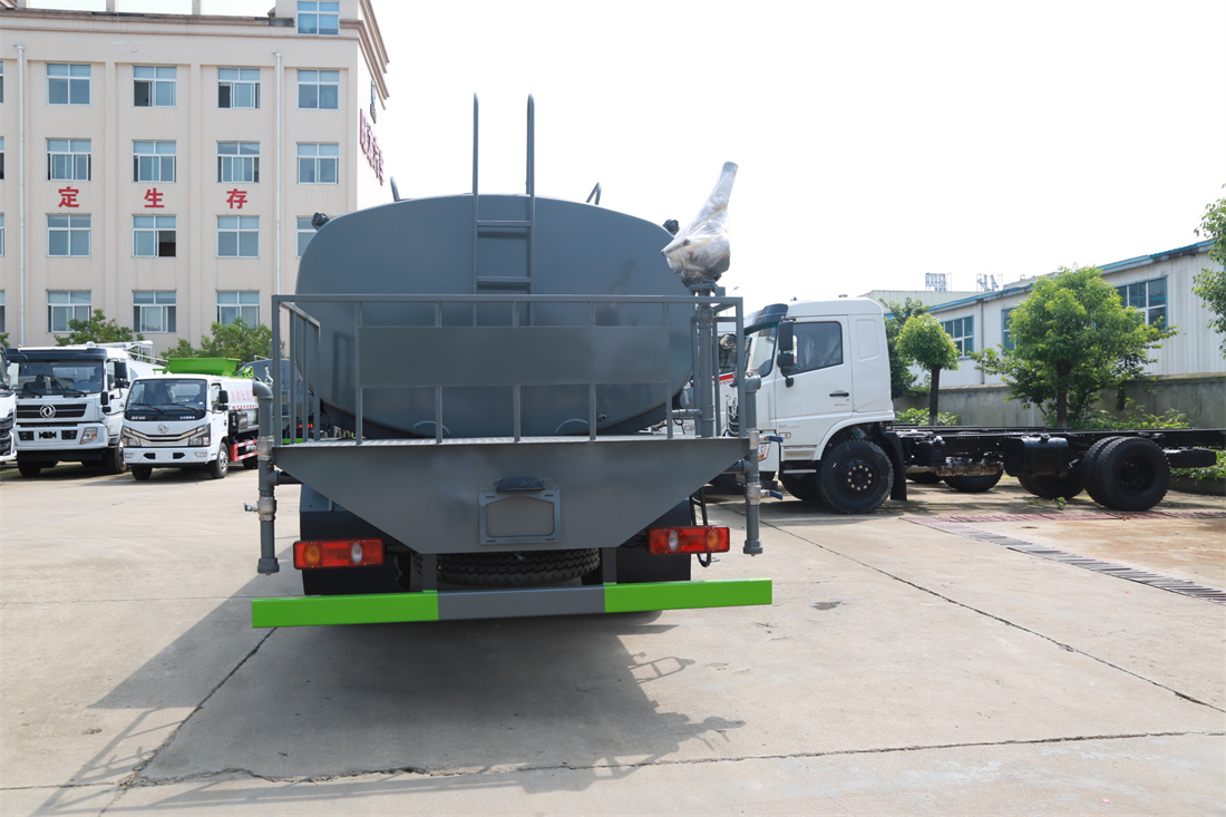 灑水車前裝有鴨形噴嘴或圓頭沖嘴,后面裝有圓柱開灑水噴嘴或蓮蓬頭噴嘴,后部有一工作平臺,裝配有水炮。后部還可裝8個噴嘴(選裝)。