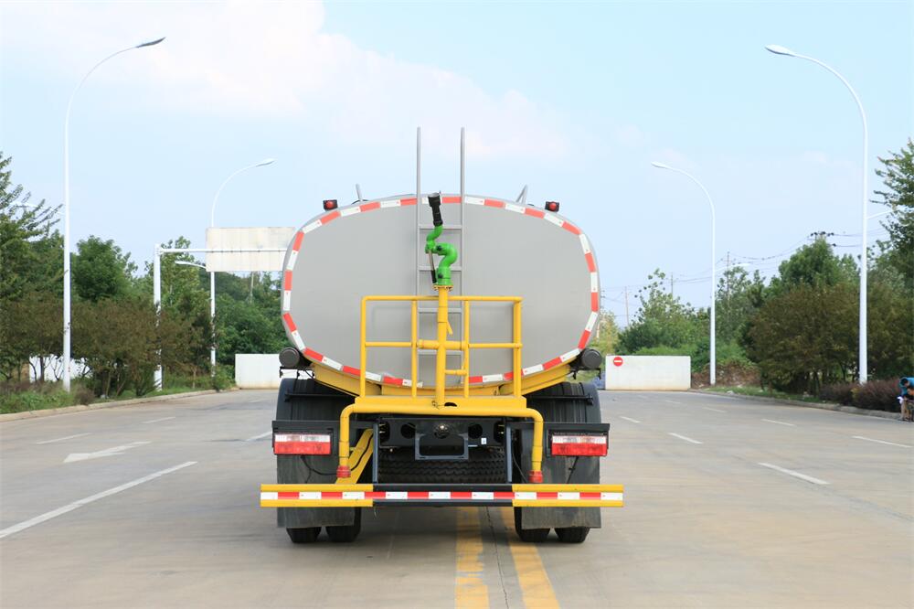 灑水車前裝有鴨形噴嘴或圓頭沖嘴,后面裝有圓柱開灑水噴嘴或蓮蓬頭噴嘴,后部有一工作平臺,裝配有水炮。后部還可裝8個噴嘴(選裝)。