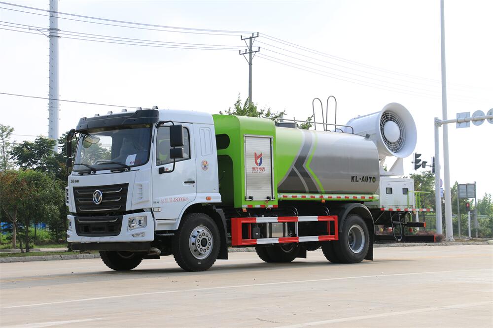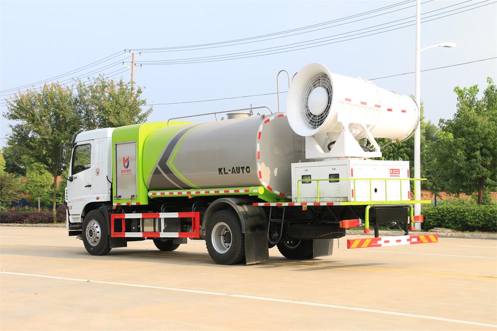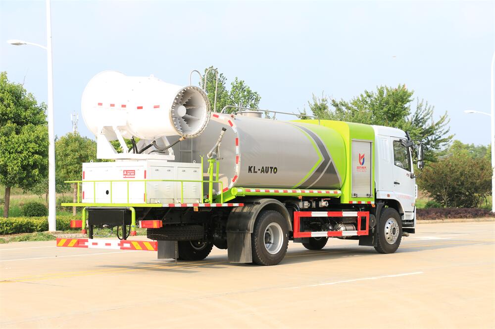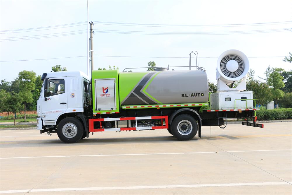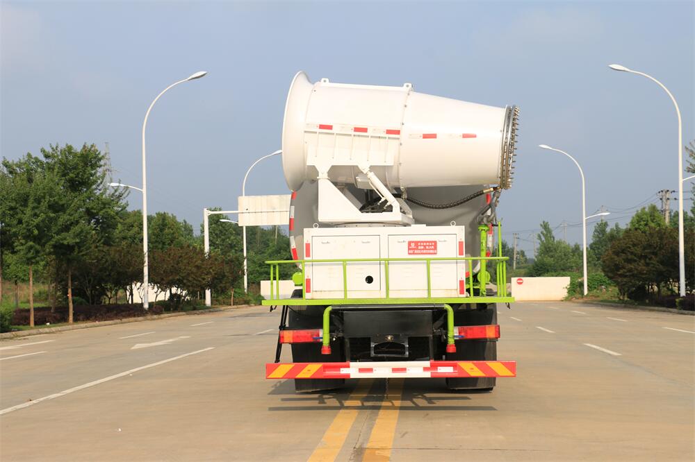 上裝配置:罐體容積為 12立方,選配風(fēng)送式霧炮機(jī)組射程30米、40米、50米、60米、80米、100米、120米霧炮,罐體鋼板為4mm碳鋼Q235材質(zhì),罐內(nèi)隔板具有防波作用,以減輕汽車行駛時罐體液體沖擊,罐體及整車外形尺寸按照公告。帶大功率專用灑水泵,泵可自吸自排,整車前沖、后灑、側(cè)噴、帶65消防接口,后平臺配CLW-50、CLW-60、CLW-80、CLW-100、CLW-120型風(fēng)送式霧炮機(jī)組;罐體前封頭配大功率柴油發(fā)電機(jī)組;前封頭帶水位計,后平臺主管路帶1寸澆花接口,后爬梯。帶兩根輸水管及陰陽端。罐體顏色:銀/灰/綠,罐體兩側(cè)噴“多功能抑塵車”字樣,貼反光標(biāo)示。
