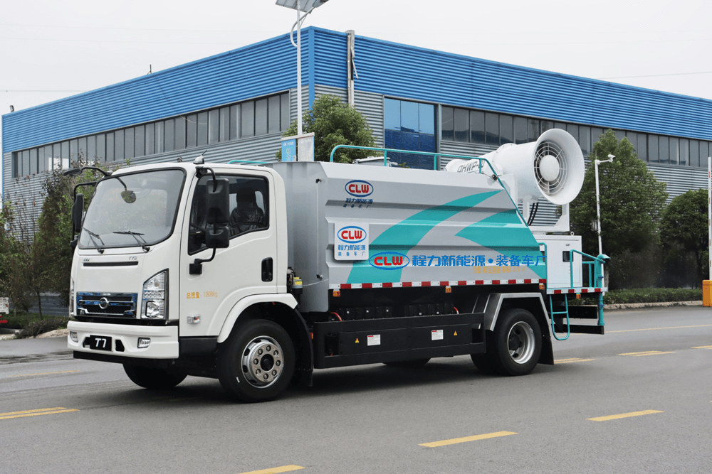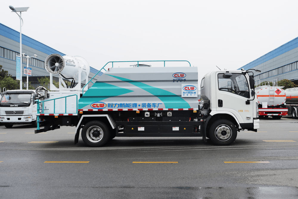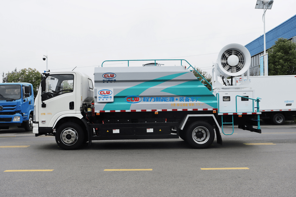 上裝配置:罐體容積為 16立方,選配風(fēng)送式霧炮機(jī)組射程30米、40米、50米、60米、80米、100米、120米霧炮,罐體鋼板為4mm碳鋼Q235材質(zhì),罐內(nèi)隔板具有防波作用,以減輕汽車行駛時(shí)罐體液體沖擊,罐體及整車外形尺寸按照公告。帶大功率專用灑水泵,泵可自吸自排,整車前沖、后灑、側(cè)噴、帶65消防接口,后平臺(tái)配CLW-50、CLW-60、CLW-80、CLW-100、CLW-120型風(fēng)送式霧炮機(jī)組;罐體前封頭配大功率柴油發(fā)電機(jī)組;前封頭帶水位計(jì),后平臺(tái)主管路帶1寸澆花接口,后爬梯。帶兩根輸水管及陰陽(yáng)端。罐體顏色:銀/灰/綠,罐體兩側(cè)噴“多功能抑塵車”字樣,貼反光標(biāo)示。