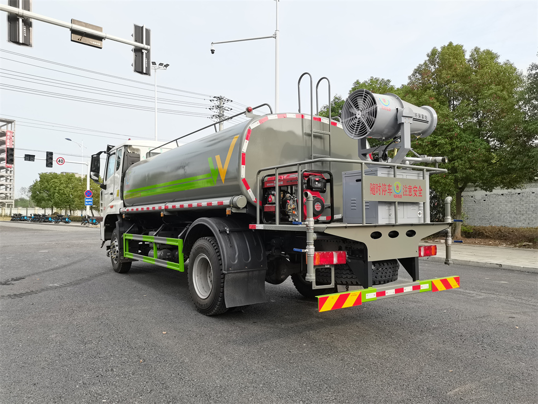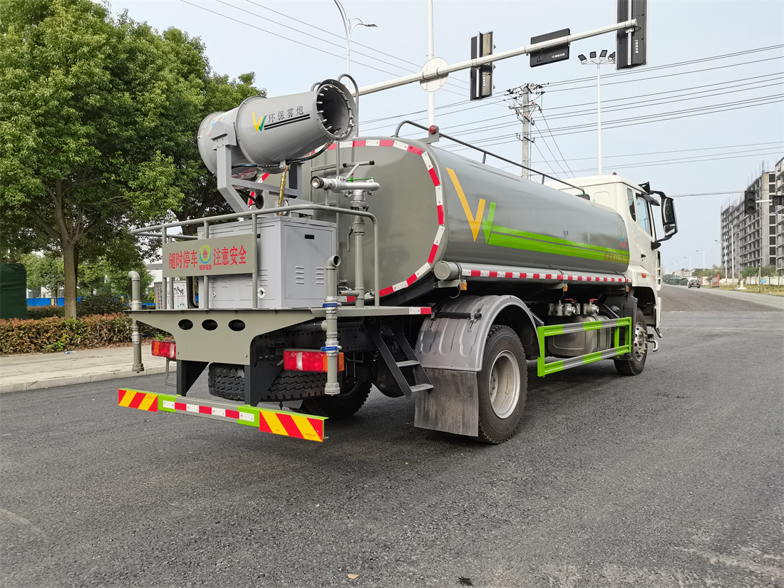 上裝配置:罐體容積 12-15立方,風送式霧炮機組30米,40米選擇,罐體采用國標Q235碳鋼材質,罐體厚度4MM,前后封頭5MM加厚型,罐體內雙層隔板具有防波蕩作用,以減輕汽車行駛時罐內液體沖擊;灑水車整車及外形尺寸嚴格按照**機動車公告制作而成;裝配大功率專用灑水泵,前沖、后灑、側噴、后平臺帶綠化灑水炮,灑水炮可全方位旋轉,可連續調成直沖狀、大雨、小雨、毛毛雨;配消防接口,自流閥,濾網,帶自吸自排功能。前封頭帶水位計,后平臺主管路帶1寸澆花接口,后爬梯,帶1個消防接頭,帶1個自流閥,1個過濾裝置,其余標配。