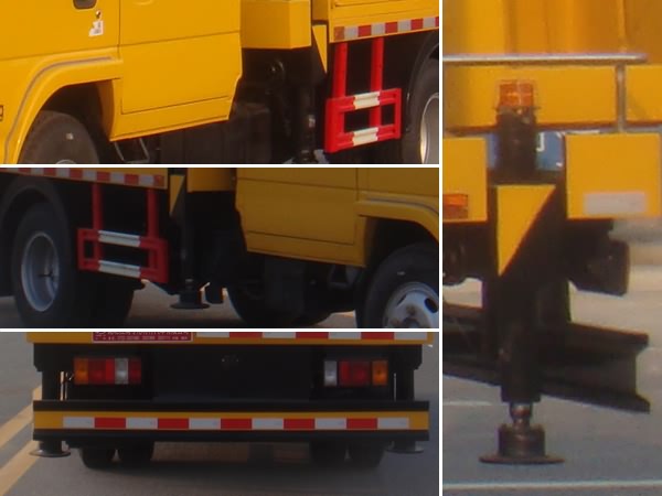 吊鉤為選裝件;前伸440mm;側(cè)面防護及后下部防護裝置材料材質(zhì):Q235,連接方式:焊接加螺栓連接;后下部防護裝置斷面尺寸(寬贅?:30?00(mm),離地高度:440mm;ABS及其**器型號為:APG3550500A4,生產(chǎn)廠家為:浙江亞太機電股份有限公司. |