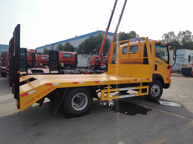 上裝采用五毫米花紋鋼板,100*100方鋼做橫梁,電動卷揚,簡易爬梯,可拉12噸以下挖機。