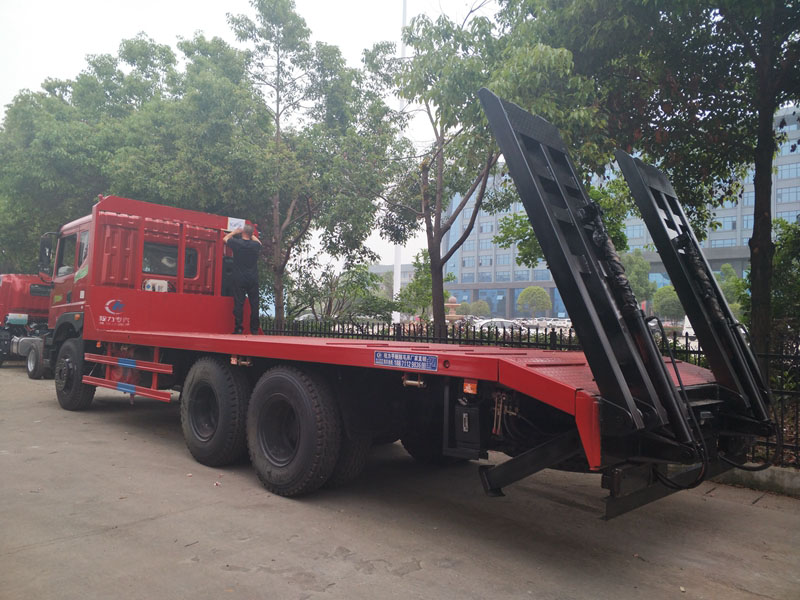 上裝采用八毫米花紋鋼板,120套100方管,加強(qiáng)雙簧爬梯,可拉25噸以下挖機(jī)。