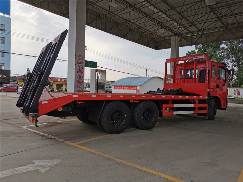 上裝采用五毫米花紋鋼板,120套100方鋼做橫梁,加強雙簧爬梯,可拉25噸-30噸以下挖機。